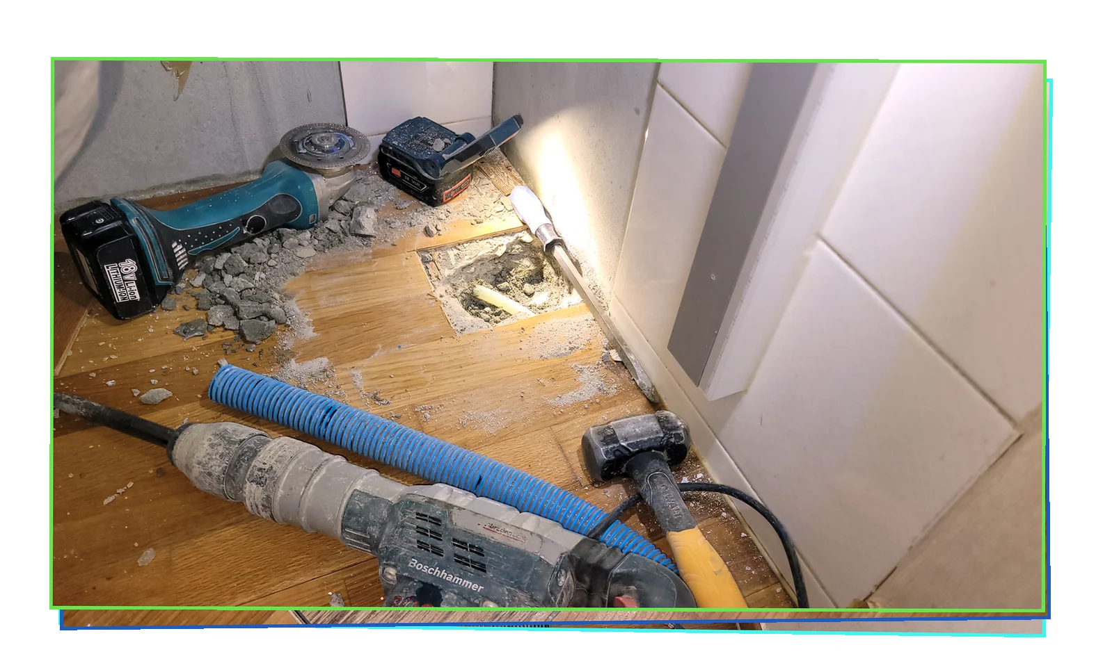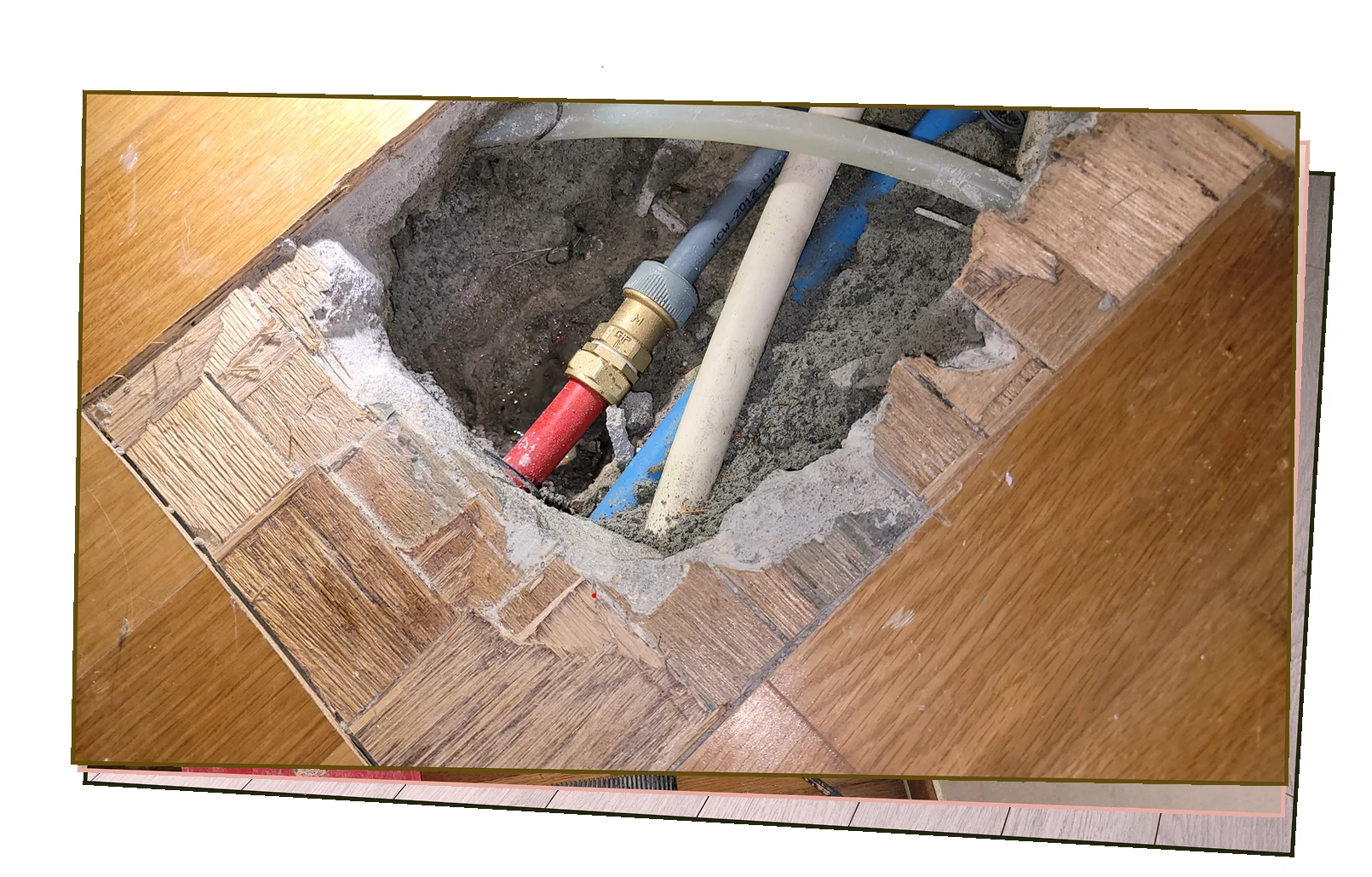 내부 배관을 점검한 결과 매립 배관의 침하로 인한 손상 에서 누수가 시작되었음을 확인했습니다.